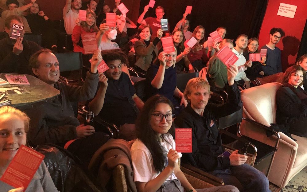 Open Screening bedeutet: Filmemacher:innen können ohne Anmeldung, ohne Vorauswahl, ohne Jury ihren Film (an dessen Produktion sie irgendwie beteiligt waren) dem Kinopublikum im Sputnik Kino präsentieren. Es gibt ansonsten keine Vorgaben, ausser dass der Film nicht länger als 25 Minuten sein sollte. Das Publikum und die Filmemacher:innen haben nach dem Film die Möglichkeit sich über die Filme auszutauschen. Das Open Screening versteht sich als Plattform für Filmemacher:innen und Filmliebhaber:innen und bietet den perfekten Rahmen, um Filme z.B. zum ersten Mal vor Publikum zu "testen", um ein Feedback zu erhalten, um Filme einfach der Öffentlichkeit zugänglich zu machen oder um Kontakte zu anderen Filmschaffenden für zukünftige Projekte zu knüpfen. Von Drama, Comedy, Musikvideo, Reportage, Doku, Thriller bis Experimentalfilm und gerne auch weit darüber hinaus ist jedes Format und jedes Genre möglich. Rassistische, sexistische, homophobe, diskriminierende oder aber andere unerwünschte Inhalte können vom Publikum mit gezeigter roter Karte gestoppt werden. Auch wenn der Film gestoppt wird, gibt es dazu einen Austausch mit Publikum und Filmschaffenden.